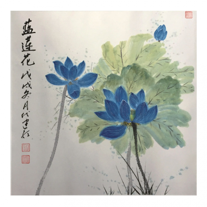 蓝莲花,两朵亭亭玉立的蓝莲花在绿叶忖托下显得神秘高雅,神采飞扬