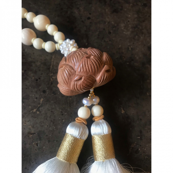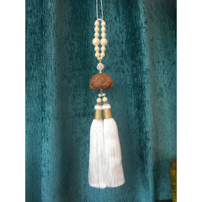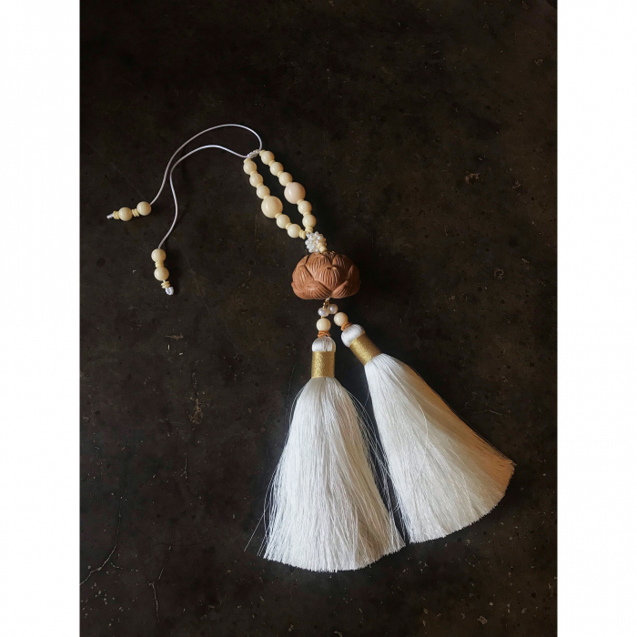 真丝双流苏黄杨木 精雕立体莲花珍珠车挂饰 白浅金莲